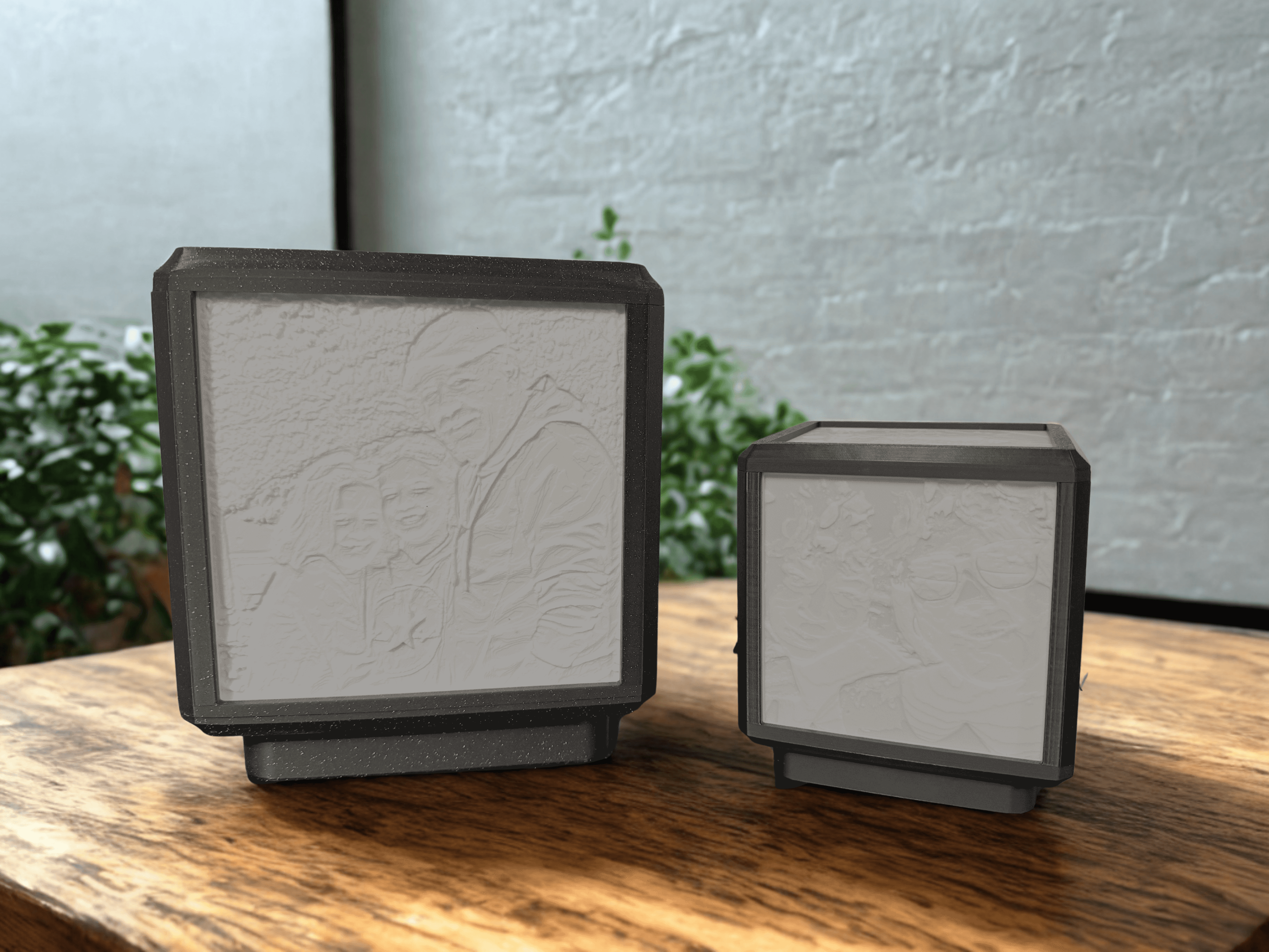 My lithophanes are made from all natural, non-toxic, PLA plastic.